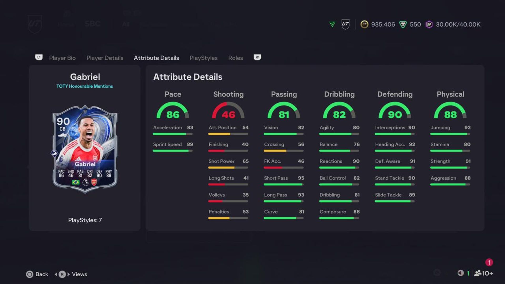 - Player Reward: Gabriel TOTY Honourable Mentions (CB, Arsenal, Premier League)